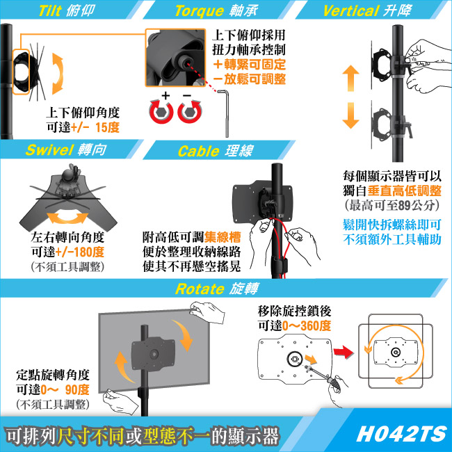 大尺寸桌上型上下雙螢幕架.支架 - H042TS