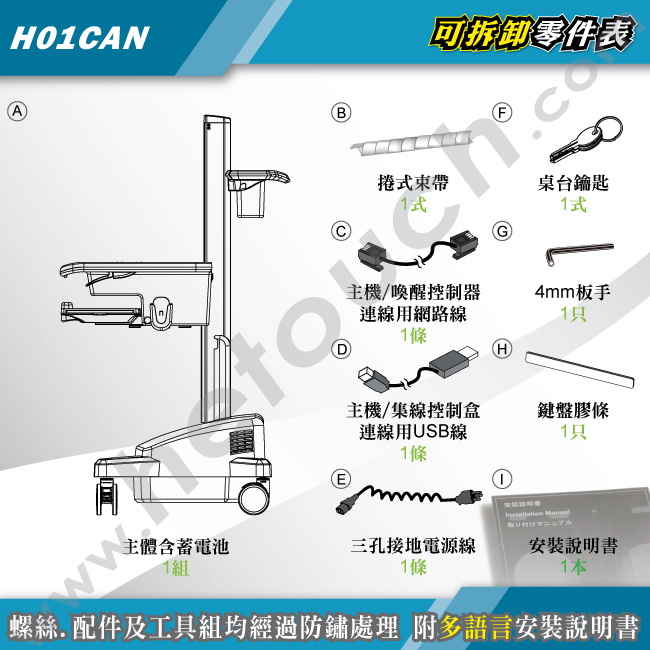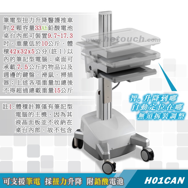 工作車.護理車.巡房車(扭力升降/鉛酸電池)-H01CAN