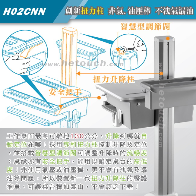 工作車.護理車.巡房車(扭力升降/無電池)-H02CNN