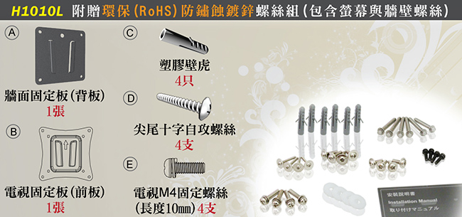 HE H1010L 液晶電視/螢幕固定式壁掛架