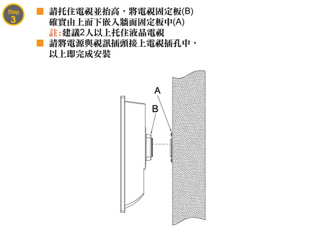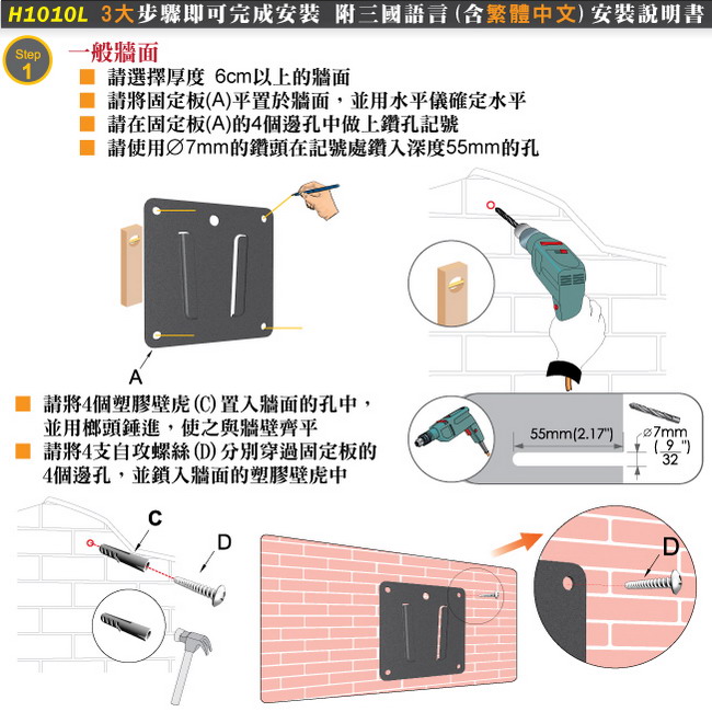 ◎隨機附上繁體中文安裝說明書,讓您清楚的了解正確的壁掛架安裝步驟,省卻找師傅安裝的昂貴費用!