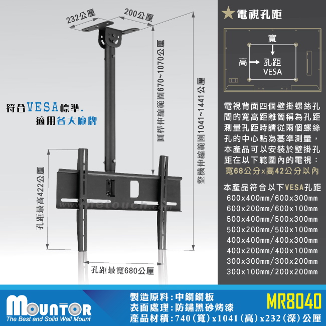 37~75"LED/LCD可調型懸吊架.電視架-MR8040