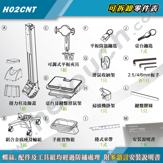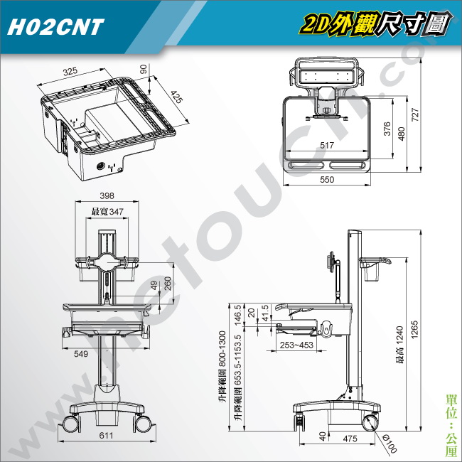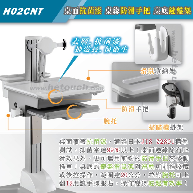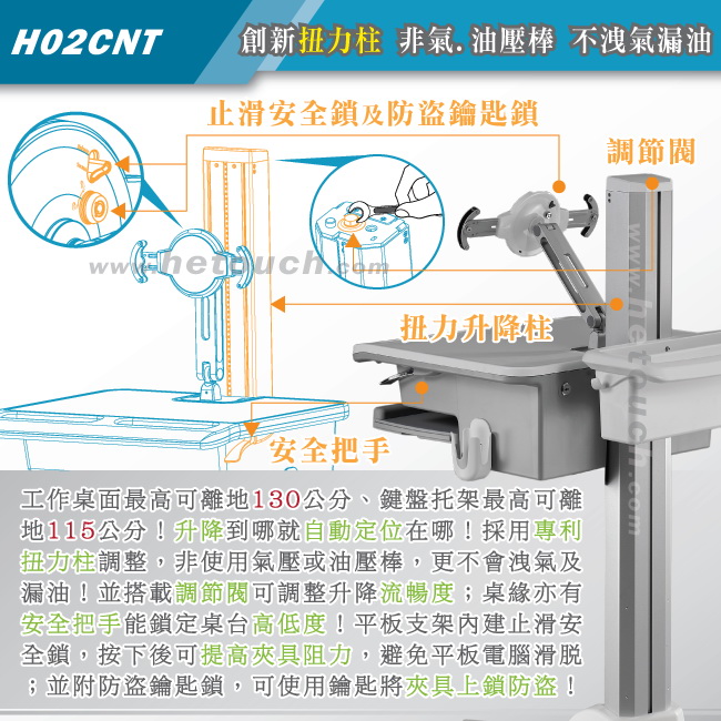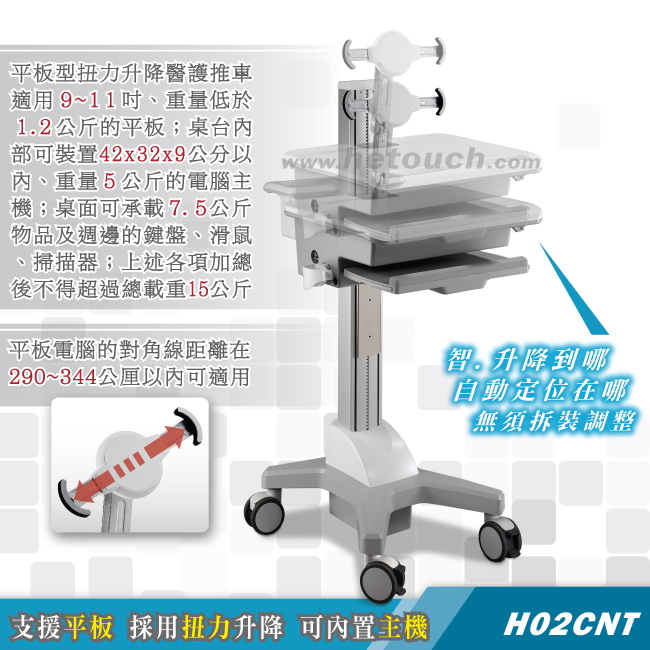 工作車.護理車.巡房車(扭力升降/無電池)-H02CNT