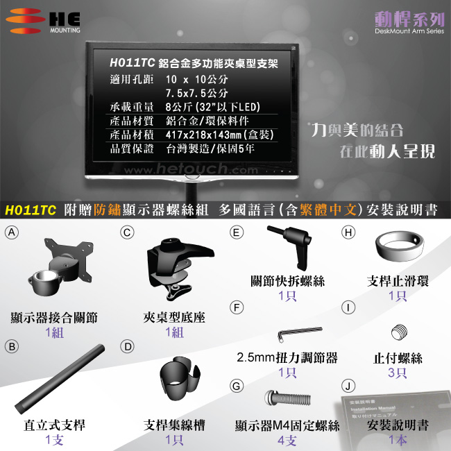 形,所以HE的產品能提供給消費者5年的保固期,保證支架在正確的使用下能歷久彌新。
