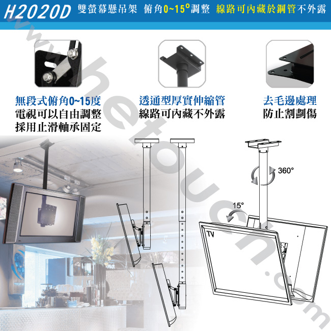 22~46"LED雙螢幕懸吊架.電視架 - H2020D