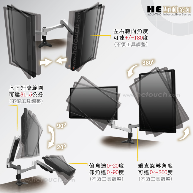 ●須搭配HE單/雙/三/四/六螢幕架使用