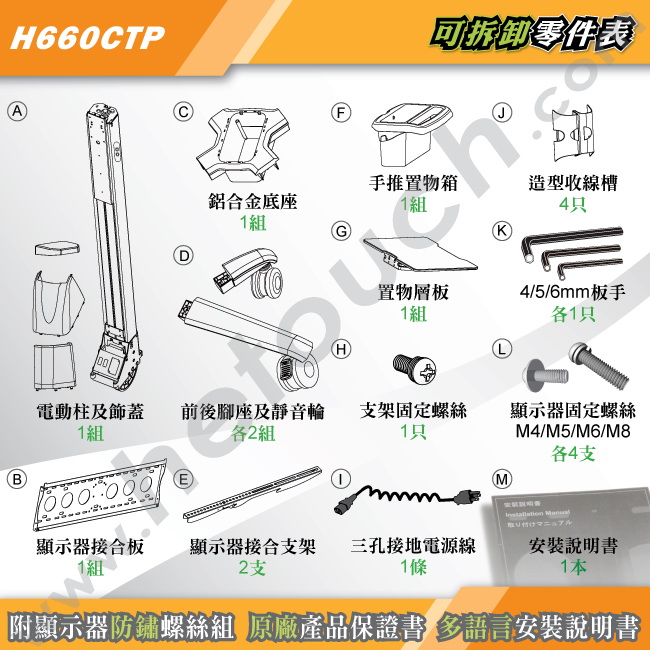 ◎螺絲、配件及工具組均經過鍍鎳或防鏽處理,通過歐盟環保組織RoHS檢驗,請您安心使用!