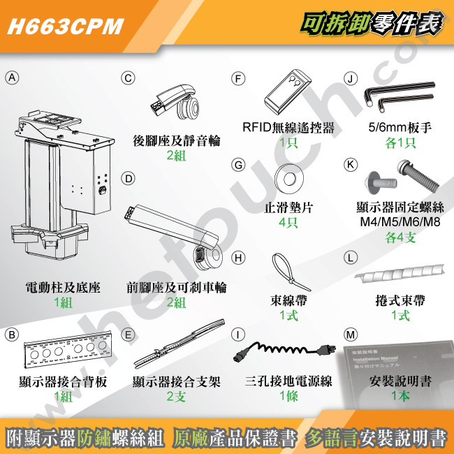 ◎螺絲、配件及工具組均經過鍍鎳或防鏽處理,通過歐盟環保組織RoHS檢驗,請您安心使用!