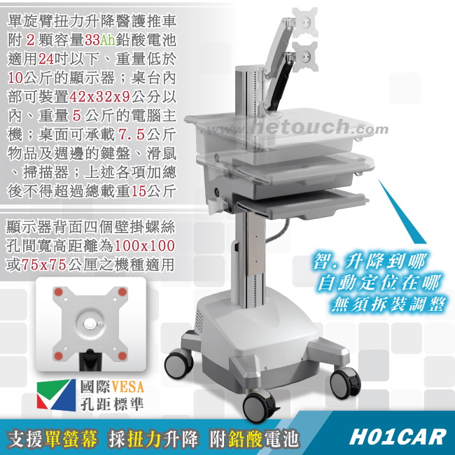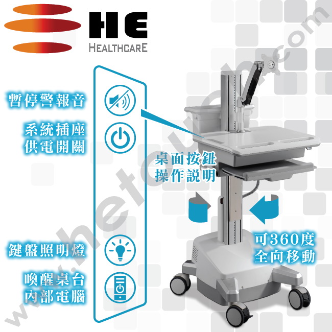 醫療推車/護理車/巡房車 - 支援單顯示器