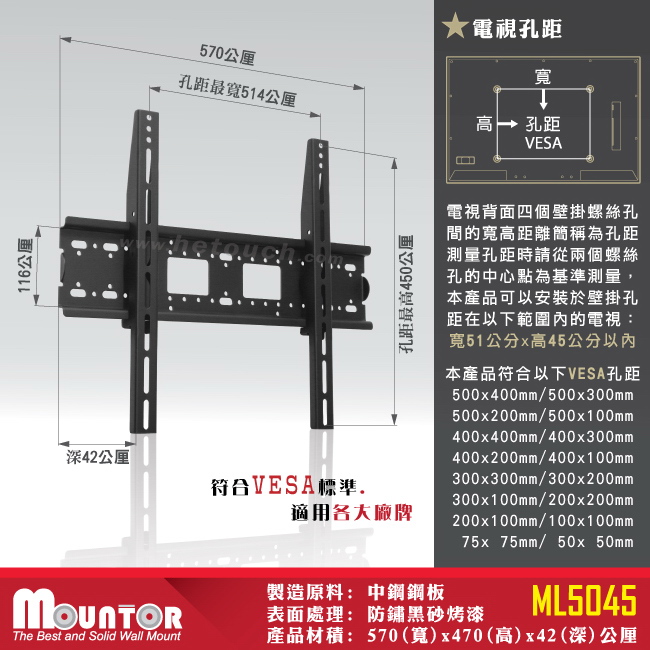 55"以下LED/LCD固定型壁掛架.電視架-ML5045