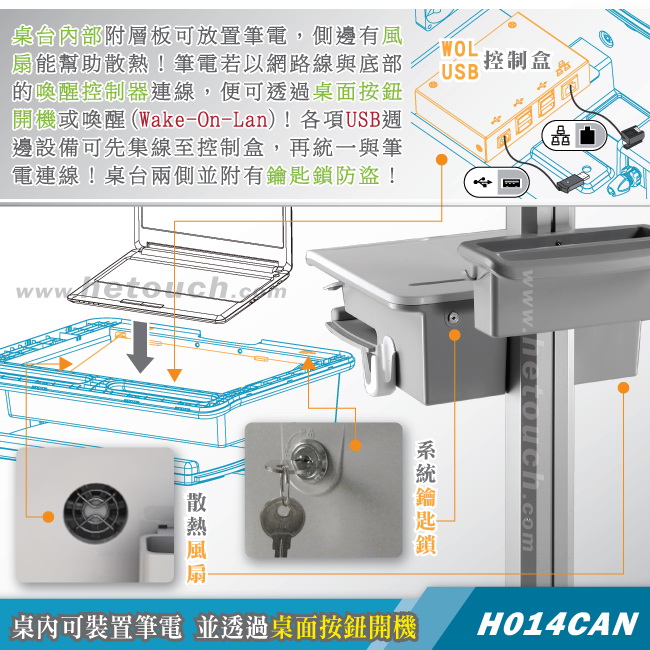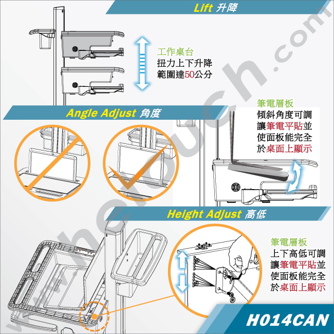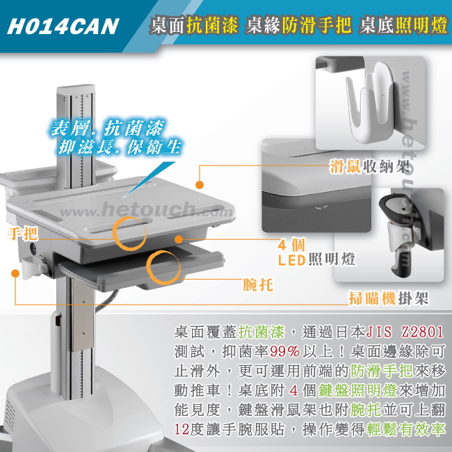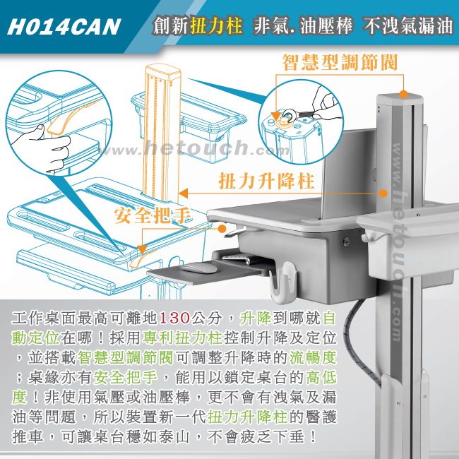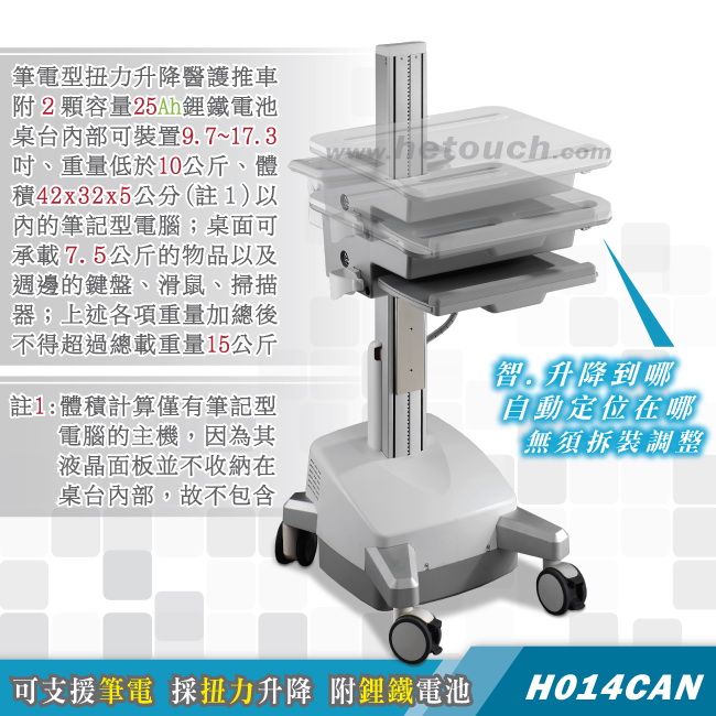 工作車.護理車.巡房車(扭力升降/鋰鐵電池)H014CAN