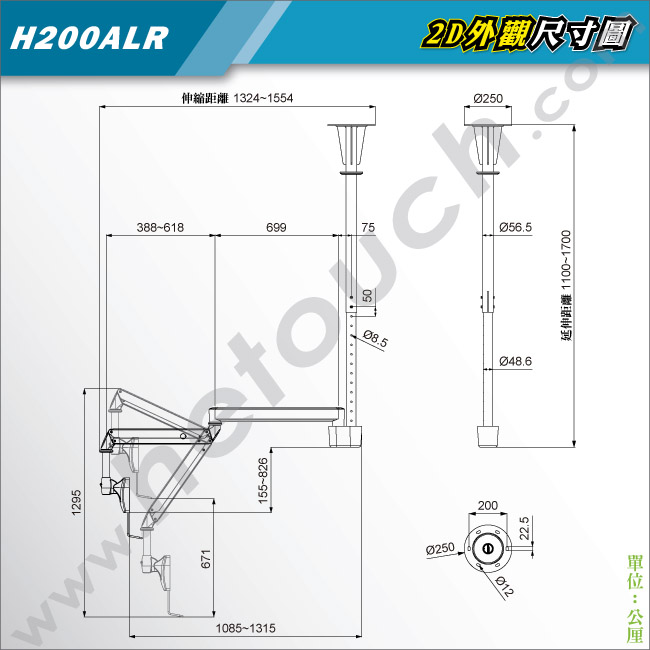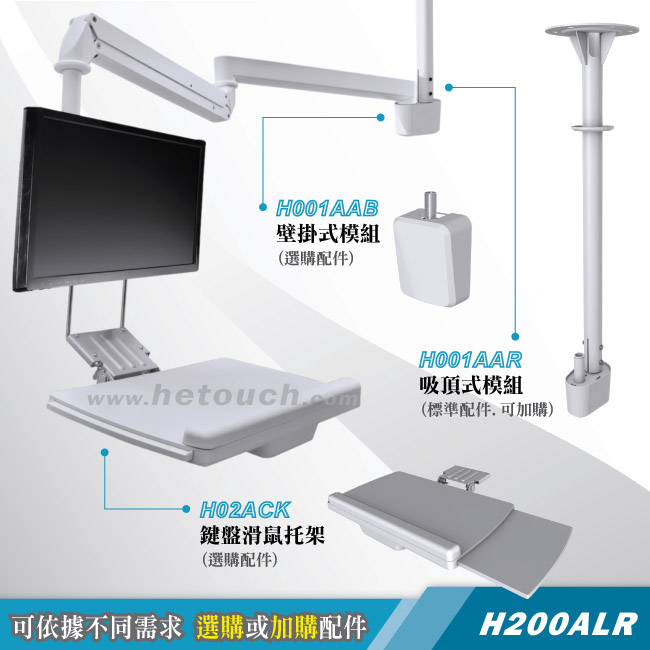●適用24吋以下支援VESA孔位的顯示器 ●顯示器重量須超過2.5公斤並低於6.5公斤 ●可隨意升降.前後左右移動.俯仰角度調整 ●讓病患.家屬.護理人員.臨床醫師交互使用 ●無論站著.坐著.躺著皆可舒適觀看及操作 ●三向調節閥-控制移動顯示器時的流暢度 ●懸臂保險栓-防止懸臂與顯示器意外碰撞 ●鋼管的垂直伸縮範圍為110~170公分 ●懸臂及吸頂模組可內藏線路完全不外露 ●台灣製造 / 保固3年 / 投保責任險6000萬