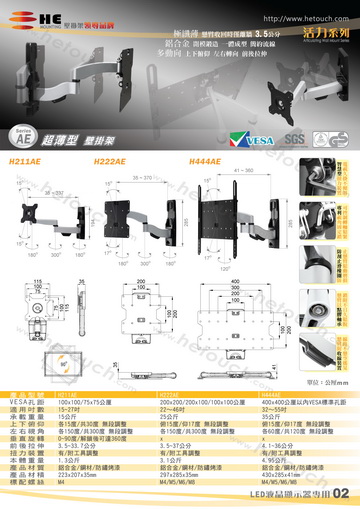 包含HE的超薄型電視拉伸架,以及Mountor的一撥即扣電視壁掛架,皆屬業界革命性產品,