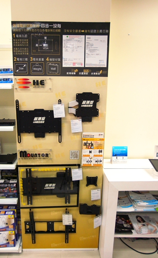 以及一撥即扣壁掛架,皆屬業界革命性產品,款式多樣、功能多元,適用各廠牌電視、螢幕,