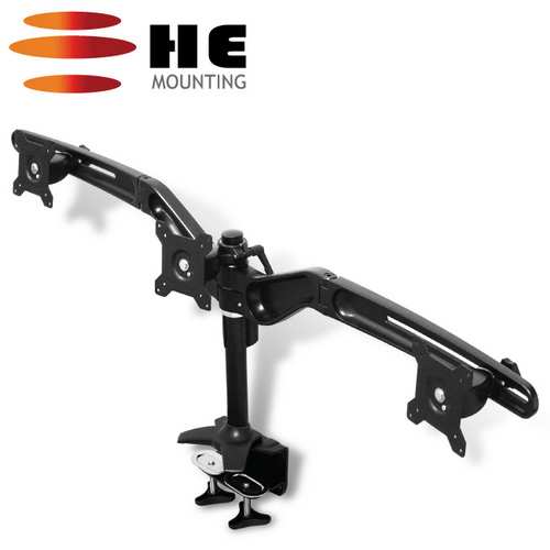 ●夾桌型三螢幕支架 ●適用各大品牌15~24吋LED / LCD螢幕 (適用螺絲孔距10x10或7.5x7.5 公分) ●多動向定位-可上下左右調整 / 垂直旋轉 ●專利扭力調節裝置-螢幕定位後絕不鬆弛 ●SGS檢驗-可承載3台8公斤以內螢幕 ●通過歐盟RoHS認證-鋁合金環保商品 ●通過國際VESA孔距標準-適用各大品牌 ●台灣製造 / 保固5年 / 責任險6000萬 ●隨附說明書 / 原廠保固卡 / 螢幕螺絲組
