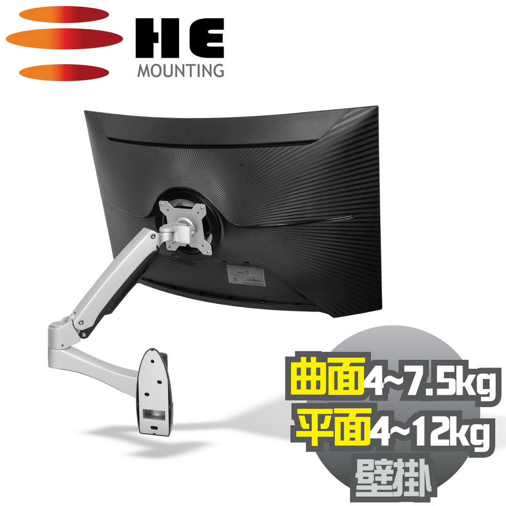 ●壁掛型底座 ●載重版 適用38吋以下, 4~12公斤平面液晶螢幕 或34吋以下,4~7.5公斤曲面液晶螢幕 (VESA螺絲孔距須100x100或75x75mm) ●螢幕高低調整-升降到哪就自動定位在哪 ●可上下俯仰.前後左右移動.水平垂直翻轉 ●三向調節閥-可調整移動螢幕時的流暢度 ●雙機械彈簧扭力裝置-螢幕定位後不鬆弛 ●台灣製造 / 保固5年 / 投保責任險6000萬