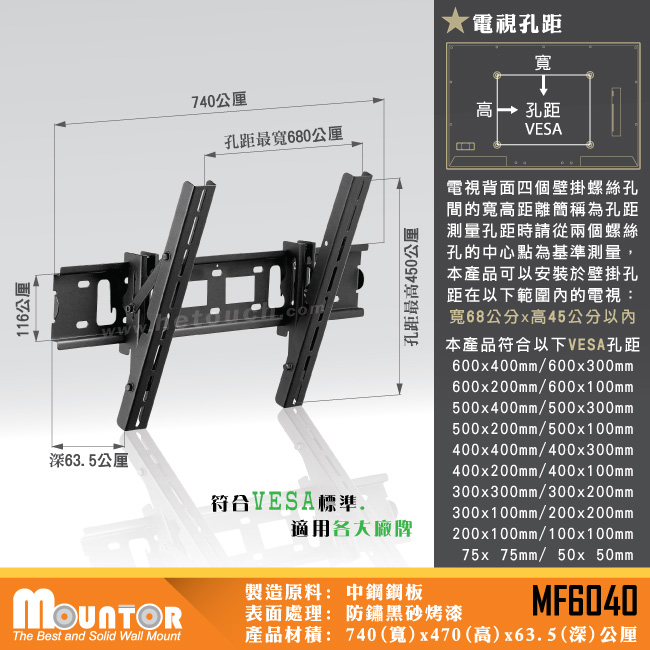 37~81"LED/LCD可調型壁掛架.電視架-MF6040