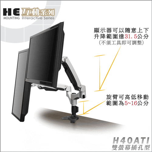鋁合金雙螢幕插孔型互動支架.螢幕架 - H40ATI