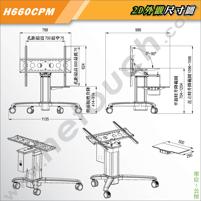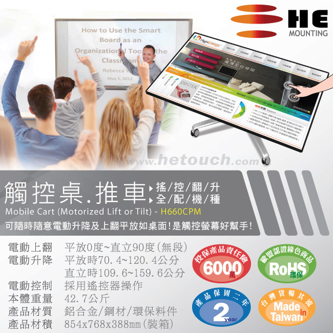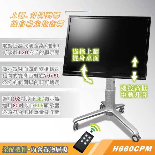 觸控桌.移動架(遙控電動上翻升降/全配)- H860CPM/H660CPM