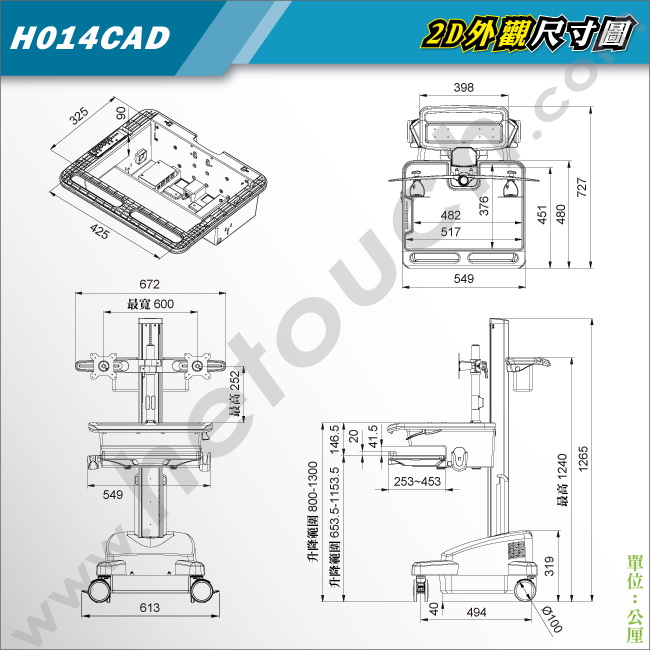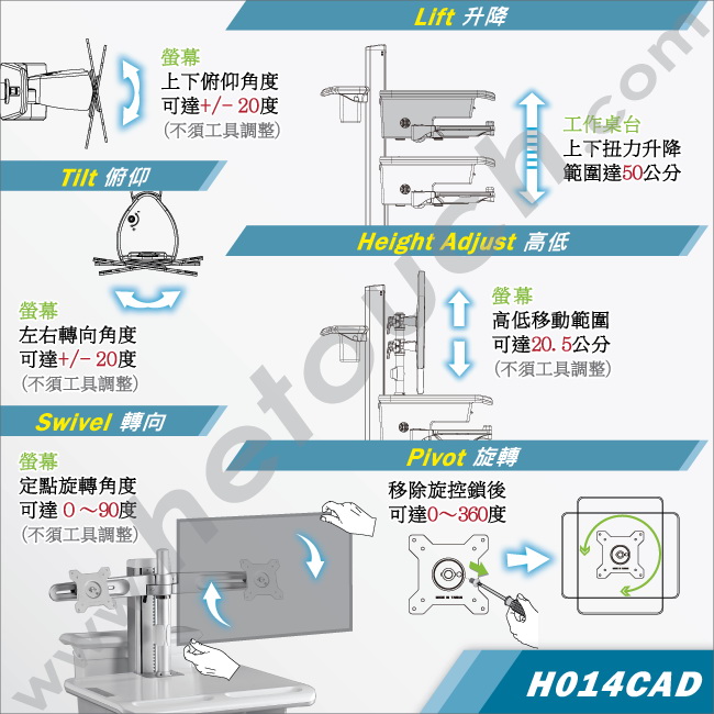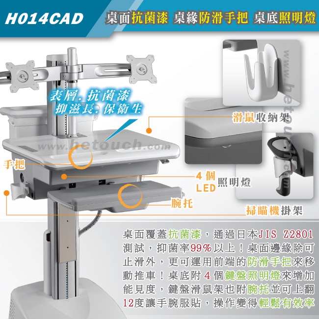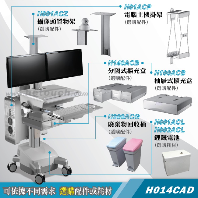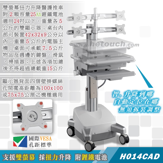 工作車.護理車.巡房車(扭力升降/鋰鐵電池)H014CAD