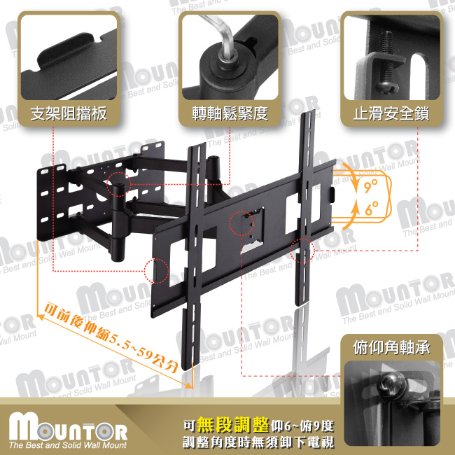 ◤穩固雙懸臂-可拉伸至59.1公分,收回時僅厚5.5公分,三叉型堅固設計,無斷裂之虞。