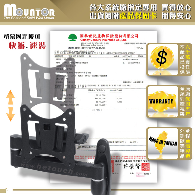 ◤責任險6000萬-本產品投保高達6000萬的產品意外責任險,只要產品在非天災、人力因素而造成的意外發生,我們將協請保險公司提供保險理賠。