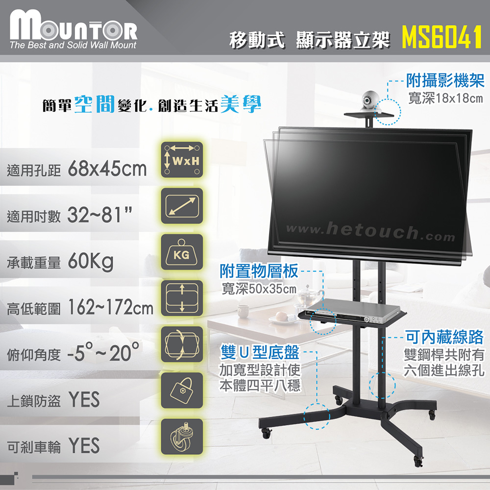 ◤雙U型底盤-加寬型設計(前84.1後63.4公分)使本體四平八穩,遭到碰撞時不會輕易傾倒。