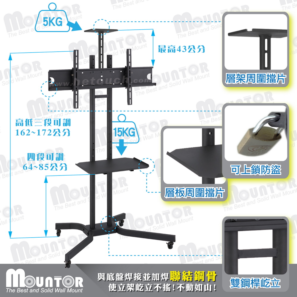 ◤雙鋼桿屹立-鋼桿與底盤焊接並加焊聯結鋼骨強化,使立架屹立不搖、穩固不動如山。