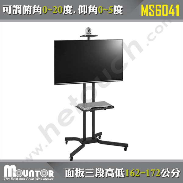 ◤面板固定板-高低3段可調,立架最高處離地面範圍162.1~172.6公分,於選擇高度後緊鎖尼龍螺母定位。