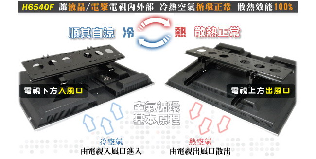 出,而下側的開孔則是為了讓冷空氣流入,這樣的基本空氣循環原理,是在電視的內部執行,和壁掛架