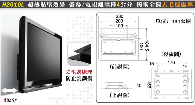 HE H2010L 液晶電視/螢幕固定式壁掛架