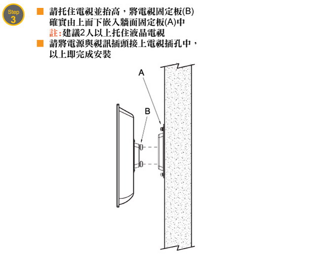 ◎隨機附上繁體中文安裝說明書,讓您清楚的了解正確的壁掛架安裝步驟,省卻找師傅安裝的昂貴費用!