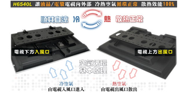出,而下側的開孔則是為了讓冷空氣流入,這樣的基本空氣循環原理,是在電視的內部執行,和壁掛架