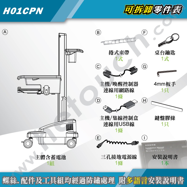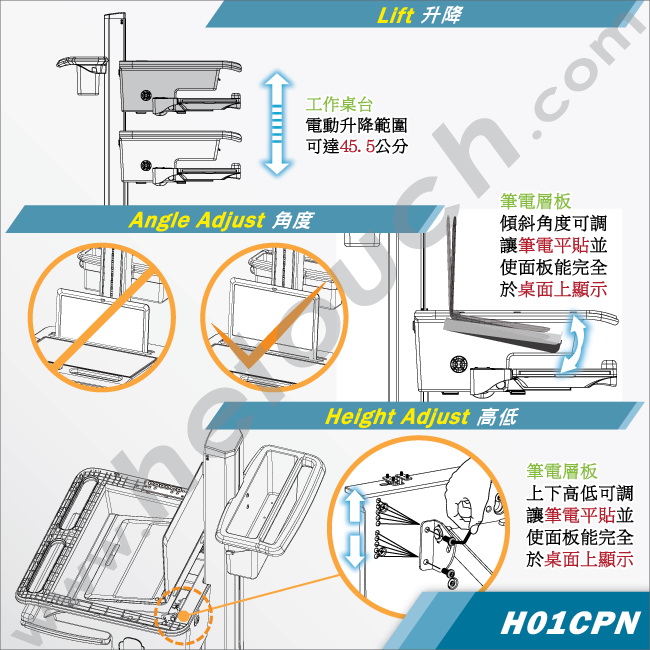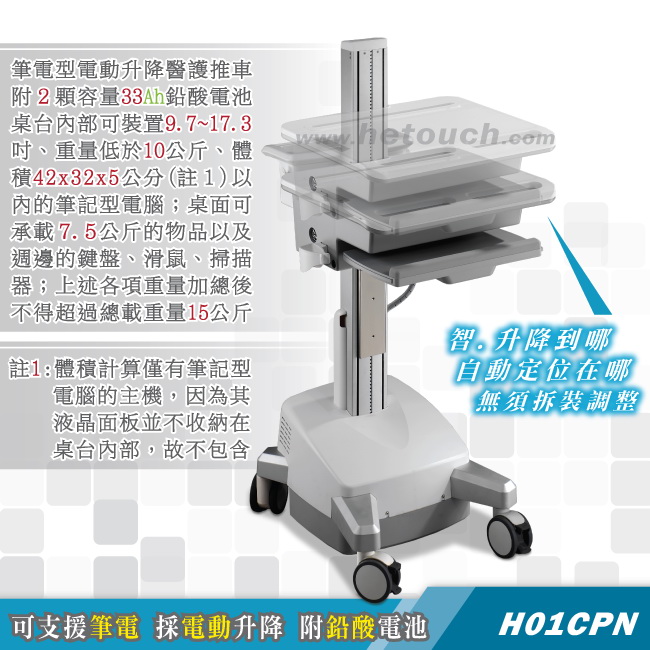 附鉛酸蓄電池可隨時電動升降、隨意不斷電移動!
