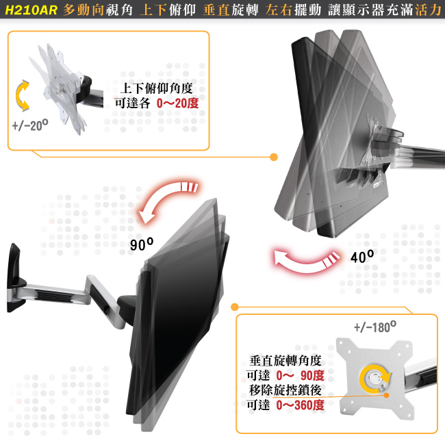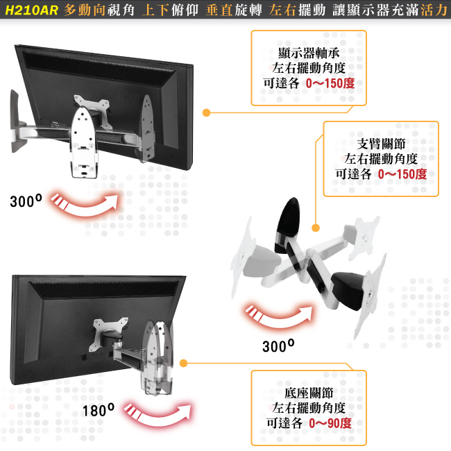 HE H210AR 液晶電視/螢幕鋁合金雙旋臂壁掛架