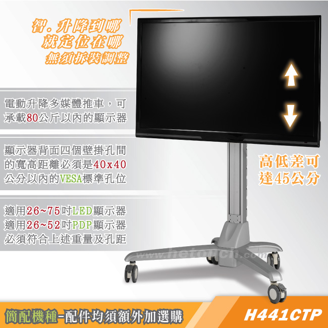 非採用氣壓或油壓棒控制升降,沒有洩氣及漏油等問題,所以裝置新一代電動柱,可耐重50公斤以下的顯示器,不會日久鬆弛、一蹶不振。