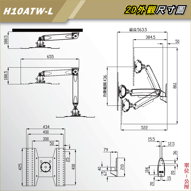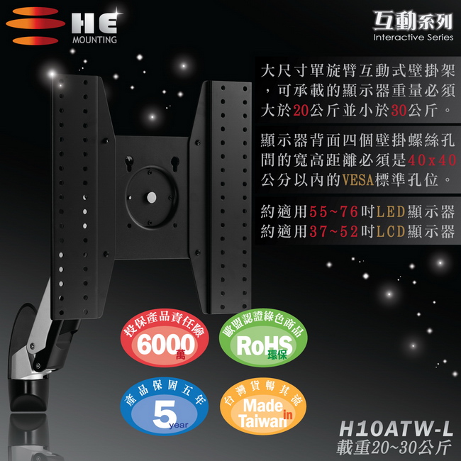 載重20~30Kg單旋臂互動式壁掛架 - H10ATW-L