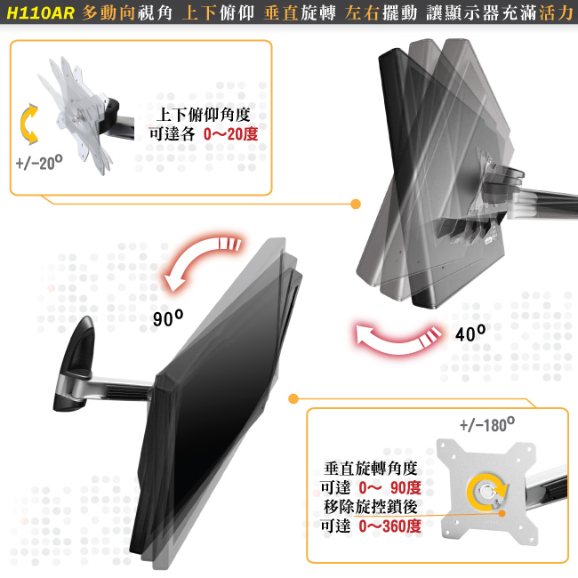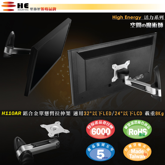 HE H110AR 液晶電視/螢幕鋁合金單旋臂壁掛架