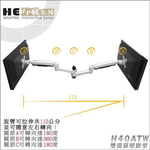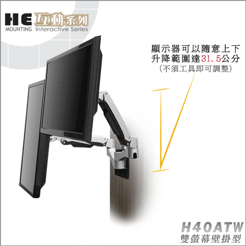 鋁合金雙螢幕壁掛型互動支架.螢幕架 - H40ATW