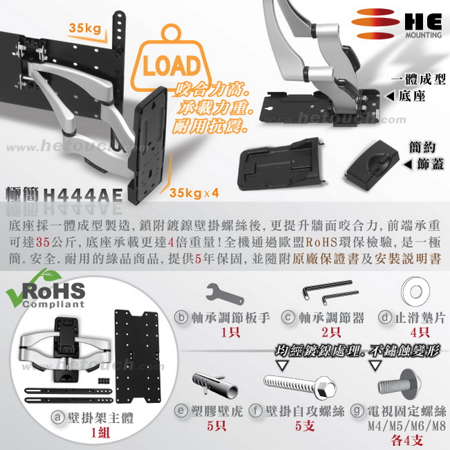 絲後,更能提升牆面咬合力,前端承重可達35公斤,底座承載更可達4倍的重量,HE堅持絕不將底座