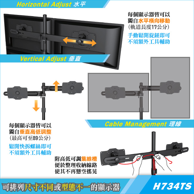 通用型!提供三種VESA孔距(20x10 / 10x10 / 7.5x7.5cm)