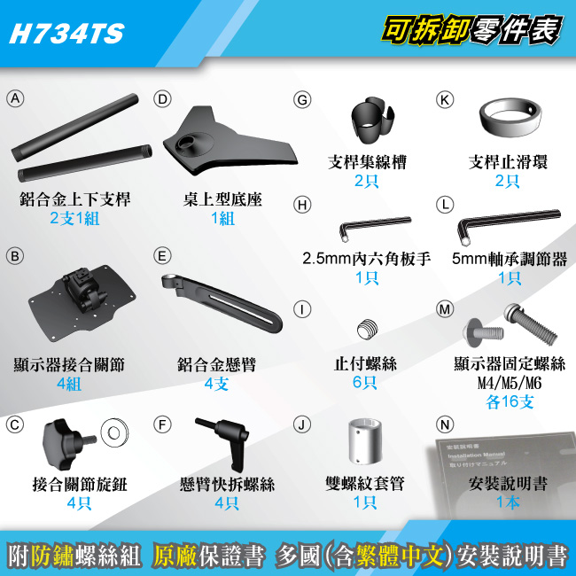 ◎隨機附上多國語言(含繁體中文)安裝說明書,讓您清楚的了解正確的安裝步驟!