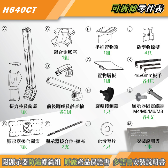 螺絲規格 (顯示器端) M4, M5, M6, M8 (產品內附)
