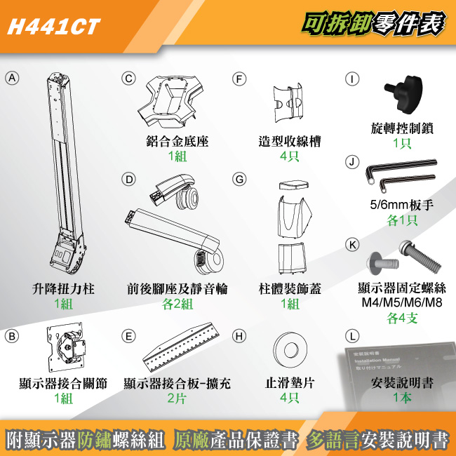 ●隨附安裝說明書 / 保固卡 / 顯示器螺絲