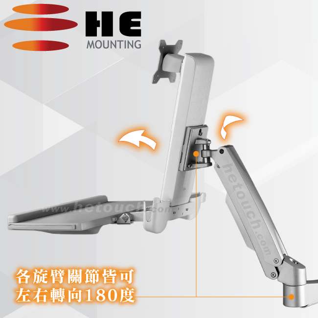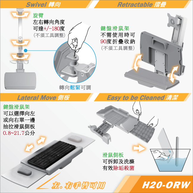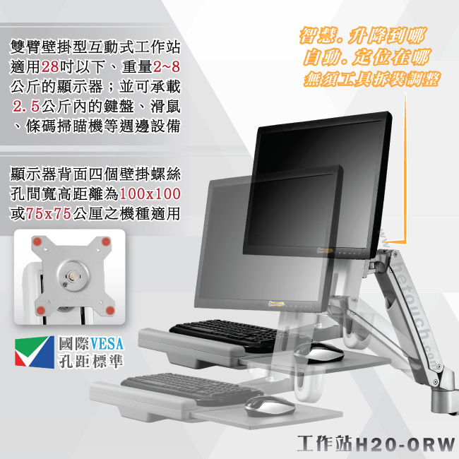 雙升降.雙旋臂.螢幕鍵盤架(壁掛型) - H20ORW