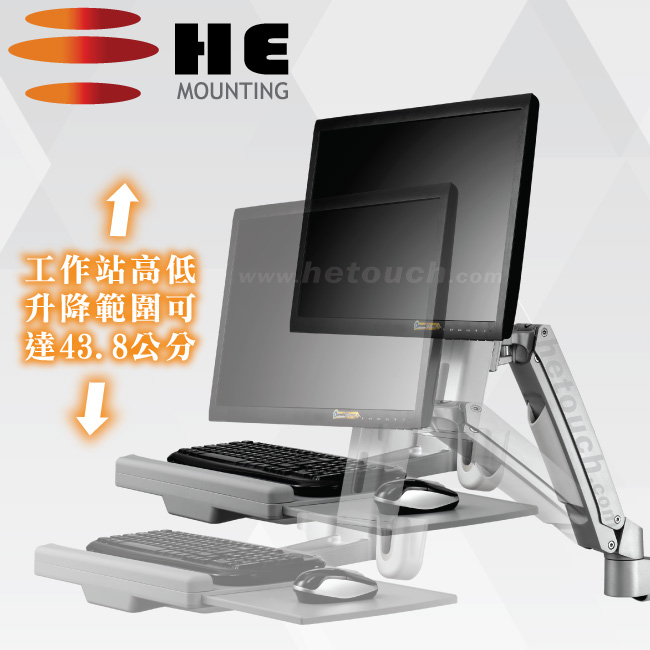 高低升降 (隨意移動) 工作站 : 高低差達43.87公分 / 螢幕 : 高低差達12.4公分 自由調整