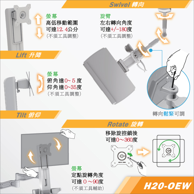 可調角度 (左右視角) 工作站 : 左0~180度 / 右0~180度 自由調整