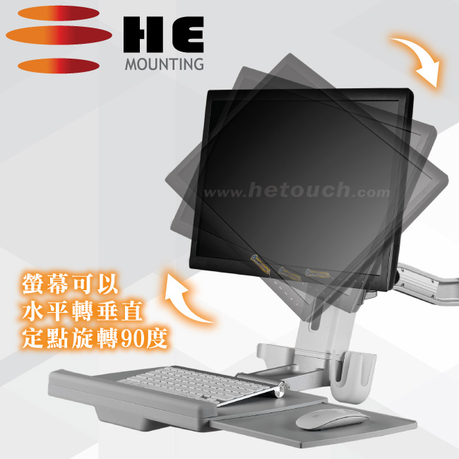 單升降.雙旋臂.螢幕鍵盤架(壁掛型) - H20OEW