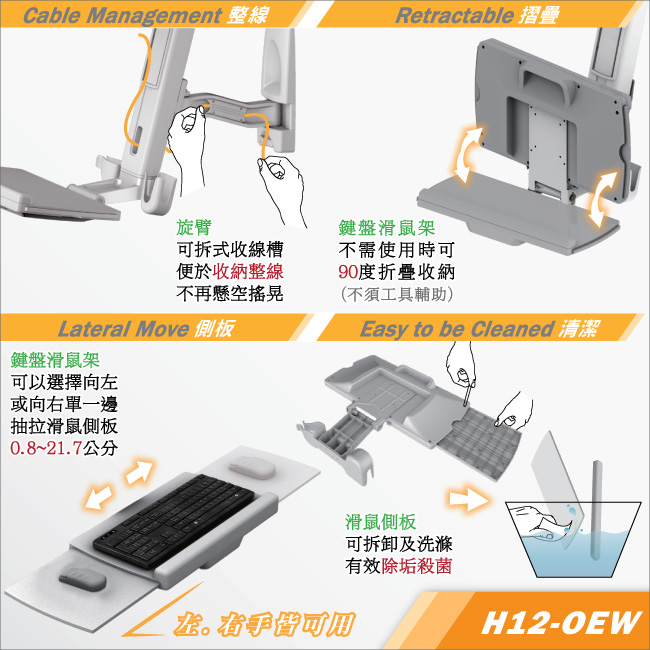 單升降.單旋臂.雙螢幕鍵盤架(壁掛型) - H12OEW