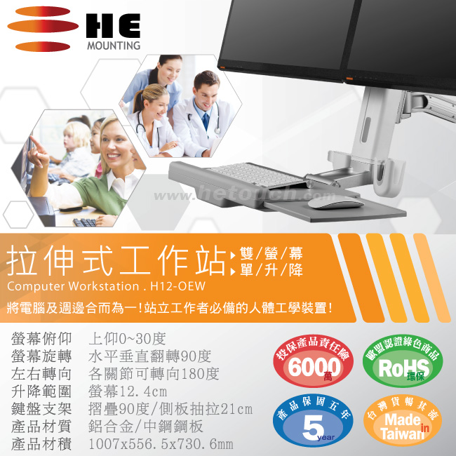全機塗料與零件皆經過歐盟RoHS環保組織檢驗,稱之為長青料件、綠色商品,在此HE除了推薦您購買我們的螢幕鍵盤架,也推薦您購買現在正夯的綠色商品,為全球環保盡一份心力,用行動護地球。